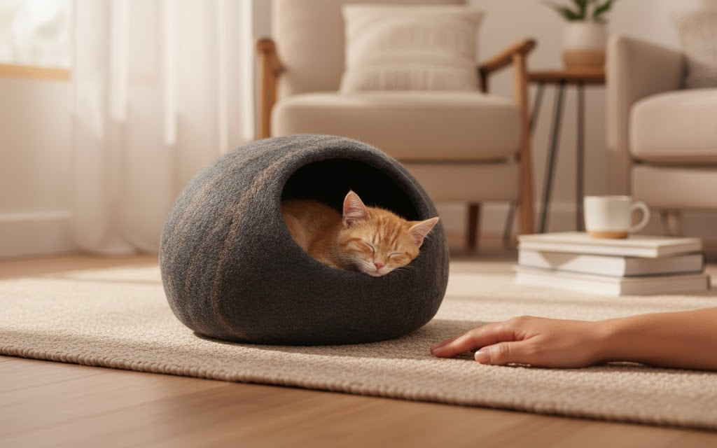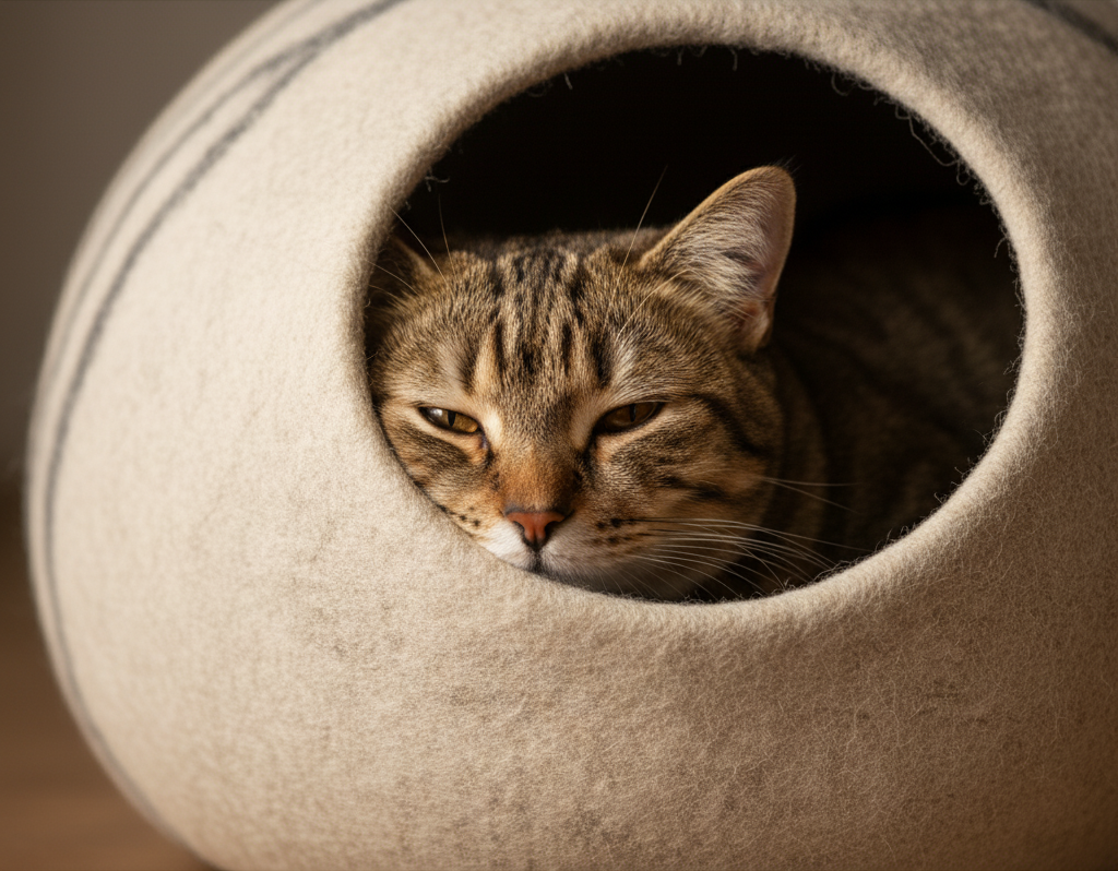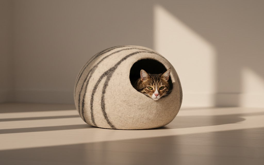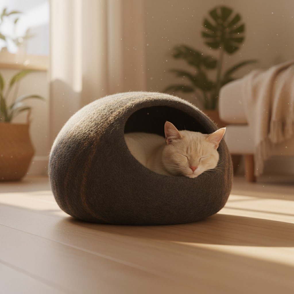 Ručna izrada od 100% prirodne vune — prostor u kojem mačka pronalazi sigurnost, a dom mir.