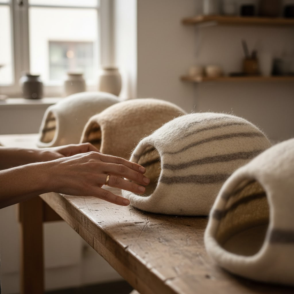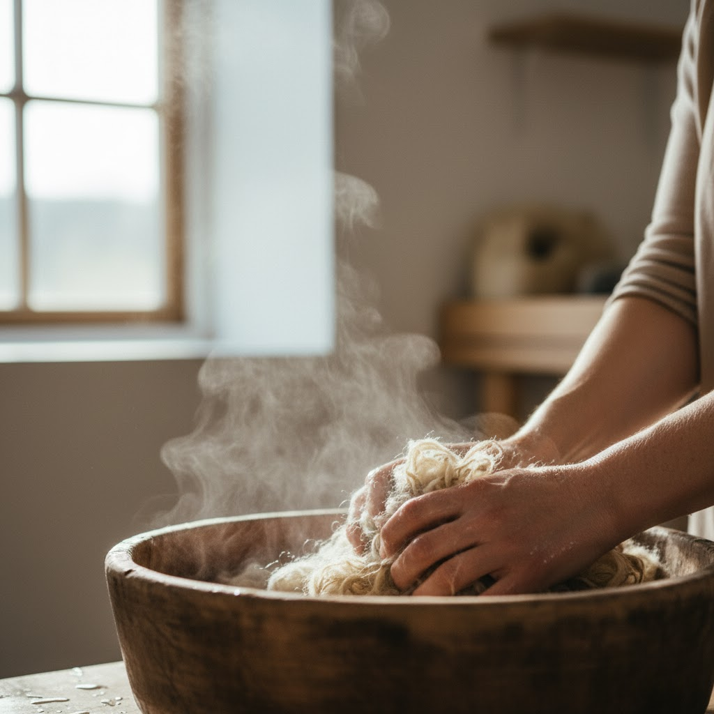 To je trenutak kada vuna prestaje biti materijal i postaje oblik — topao, čvrst, živ.