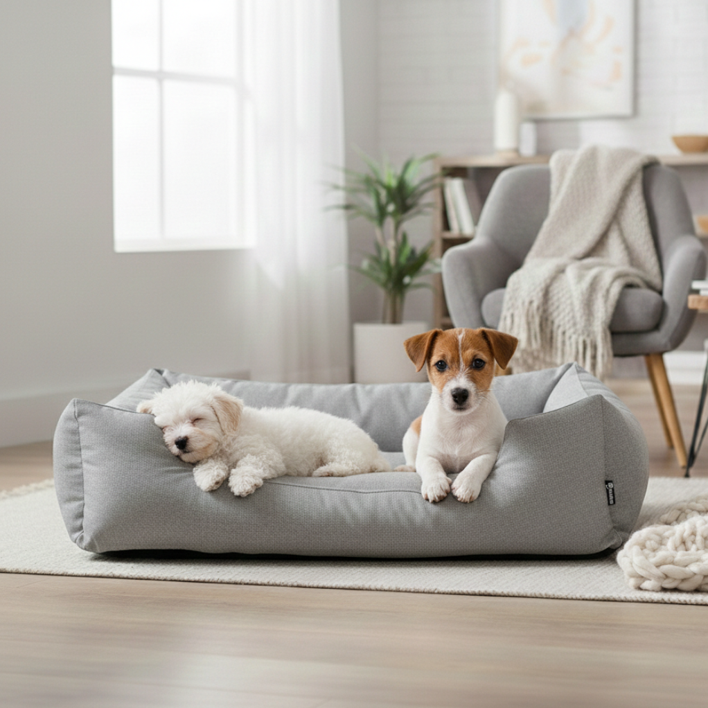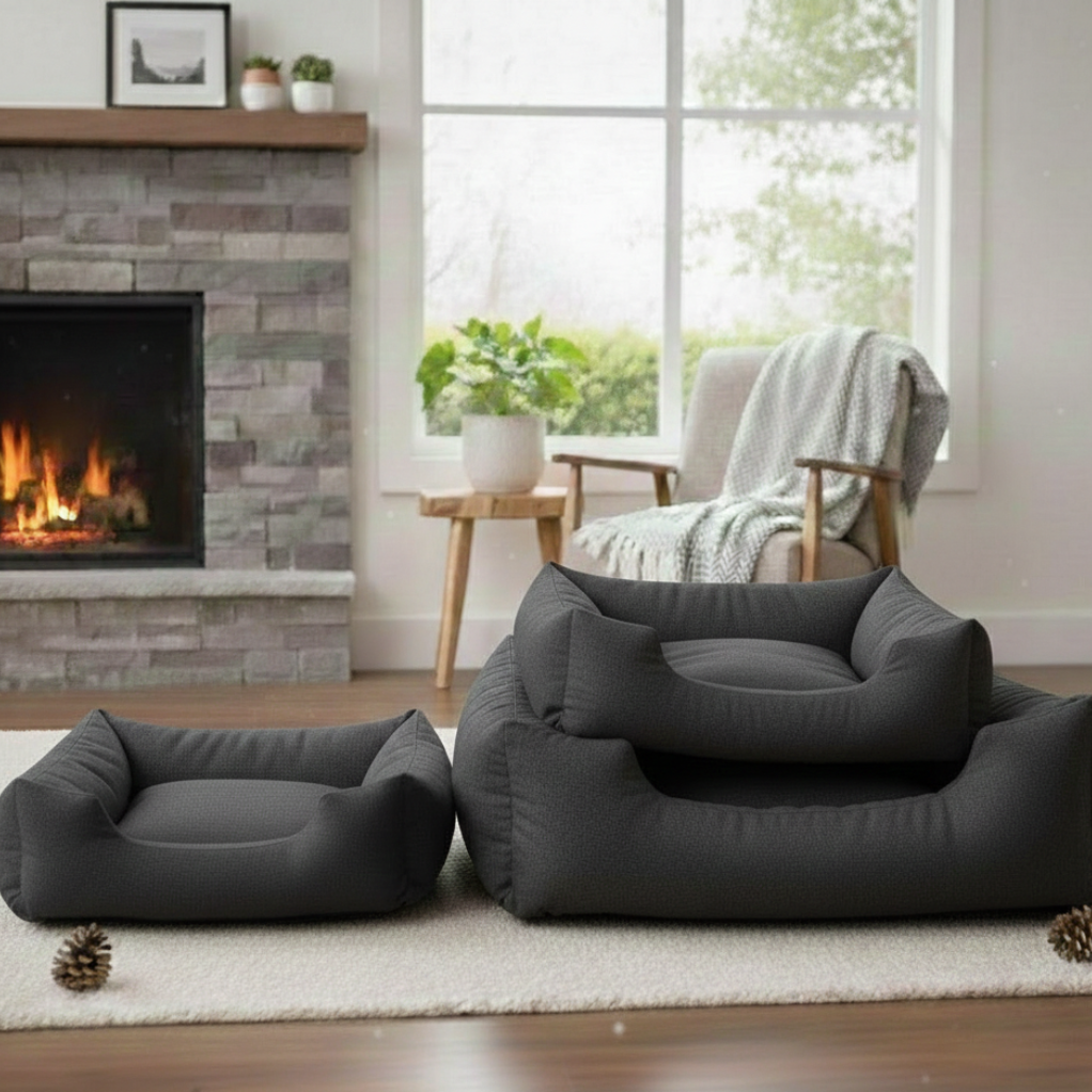Udobna, čvrsta struktura stvara jasan osjećaj vlastitog mjesta. Ležaj pruža potporu tijelu, zadržava oblik i brzo postaje prepoznatljiv kutak za odmor nakon šetnje, igre ili dugog dana. Neutralne nijanse lako se stapaju s različitim interijerima od modernih i minimalističkih do klasičnih prostora. Ležaj ne dominira prostorom, već ga tiho nadopunjuje.