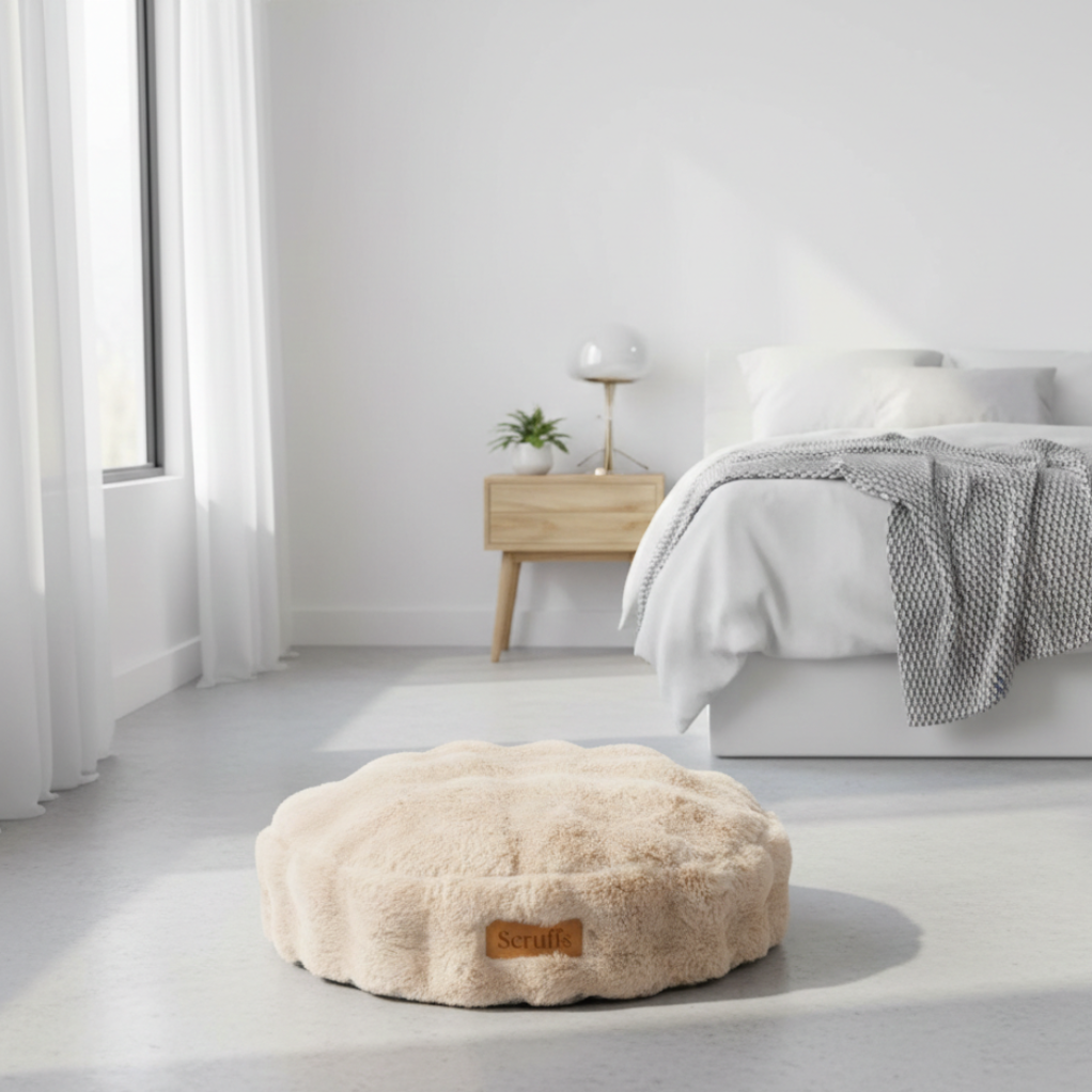 Površina je izrađena od luksuznog umjetnog krzna koje imitira mekoću kunića, nježno na dodir i izrazito ugodno za opuštanje. Bogato mekano punjenje prilagođava se tijelu ljubimca, pružajući osjećaj potpore i topline, bez pritiska na zglobove i šape.